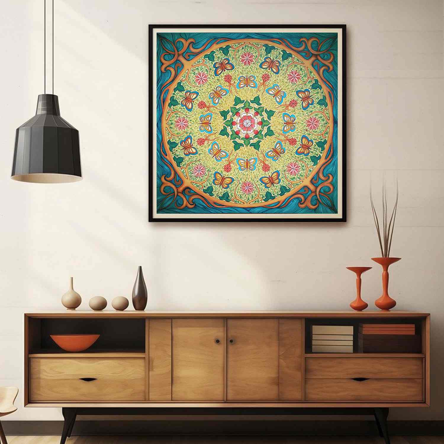 A decorative and deeply symbolic work, encouraging viewers to pause and find stillness in its rhythm.