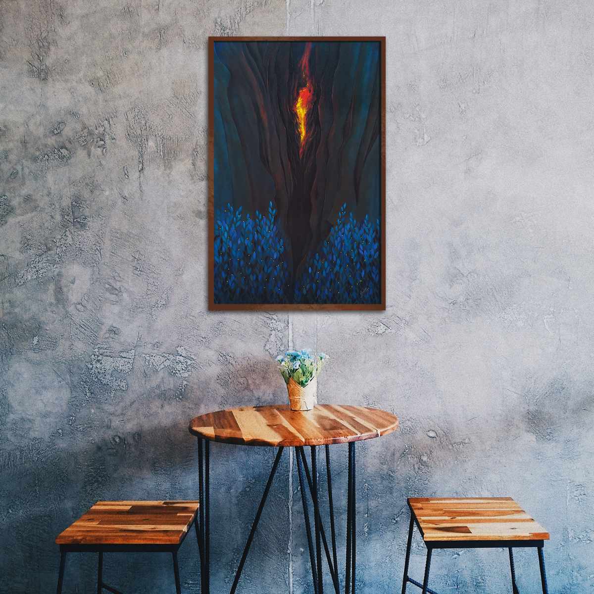 An artwork done on canvas using acrylic colors.